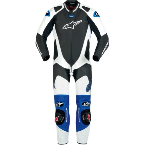 Alpinestars GP Pro Men's 1-Piece Leather Street Racing Motorcycle Race Suits - Black/White/Blue / Size 48