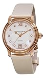 | ✚✚✚ Frederique Constant Women's FC-303WHD2P4 Ladies Automatic Mother-Of-Pearl Diamond Dial Watch Polished rose gold plated stainless steel case (34 mm in diameter, 10 mm thick), Sapphire crystal screw-down caseback, Silver guilloche center dial with mother-of-pearl frame, Sweep second hand, Rose goldtone hands and Roman numeral, 10 diamond hour markers, Date window at the 6 o'clock position, Swiss automatic movement, Caliber FC-303H2G-2, Power reserve of 42 hours, Crown set with sapphire cabochon, Scratch resistant sapphire crystal, Water resistant to 6 ATM/60 meters/200 feet, White satin leather strap, Deployment clasp, Model number: FC-303WHD2P4.